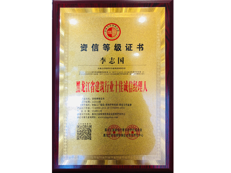 黑龍江省建筑行業(yè)十佳誠(chéng)信經(jīng)理人